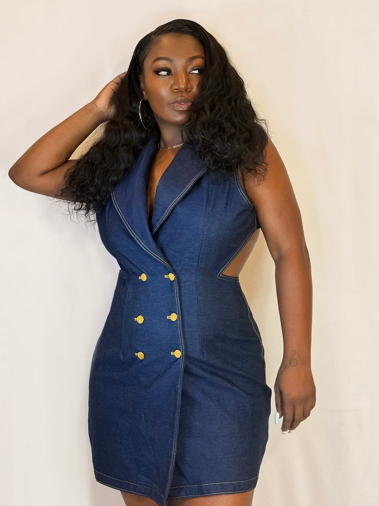 The Jupiter Dress 2.0 is sensual sophistication, that you need in your wardrobe. This versatile vest dress can be styled as a chic elevated look or layered for a business casual look. With an open back, that gives sexy!!! We Crafted this dress from a premium 100% cotton denim fabric, it’s the perfect to step out & show out.